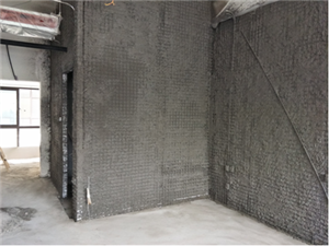 3.用沖擊鉆在放好的線上打眼,深50mm,間隔600mm,插入長200---250mm,¢6鋼筋,所有與泰柏板連接的連接配件,中心偏差不應(yīng)超過5mm。