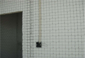 8. 在泰柏板墻上安裝的各種管線,較細(xì)的管線,可直接穿在鋼絲網(wǎng)與聚苯乙烯泡沫板中間的縫隙間,較粗的管線在安裝時先把鋼絲網(wǎng)剪開,去掉適當(dāng)?shù)呐菽?,放入管線后用平網(wǎng)覆蓋,安裝接線盒亦如此。